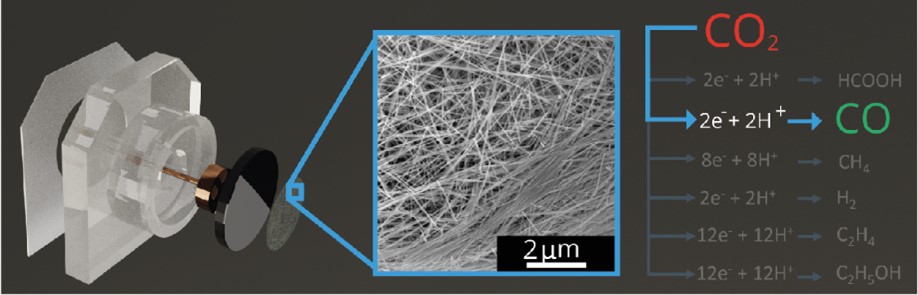 The goal of my PhD project is to study the electrocatalytic conversion of CO2 into value-added chemicals, such as carbon monoxide, by synthesizing, characterizing and testing carbon supported silver nanostructures (figure 1). In particular, the aim is to fundamentally understand the effect of different silver morphologies, such as nanoparticles and nanowires, and carbon surface functional groups on the activity and selectivity towards CO2 electroreduction products. In a broader prospective, the fundamental insight gained in this work will facilitate rational electrode design for CO2 electrochemical reduction and syngas applications.